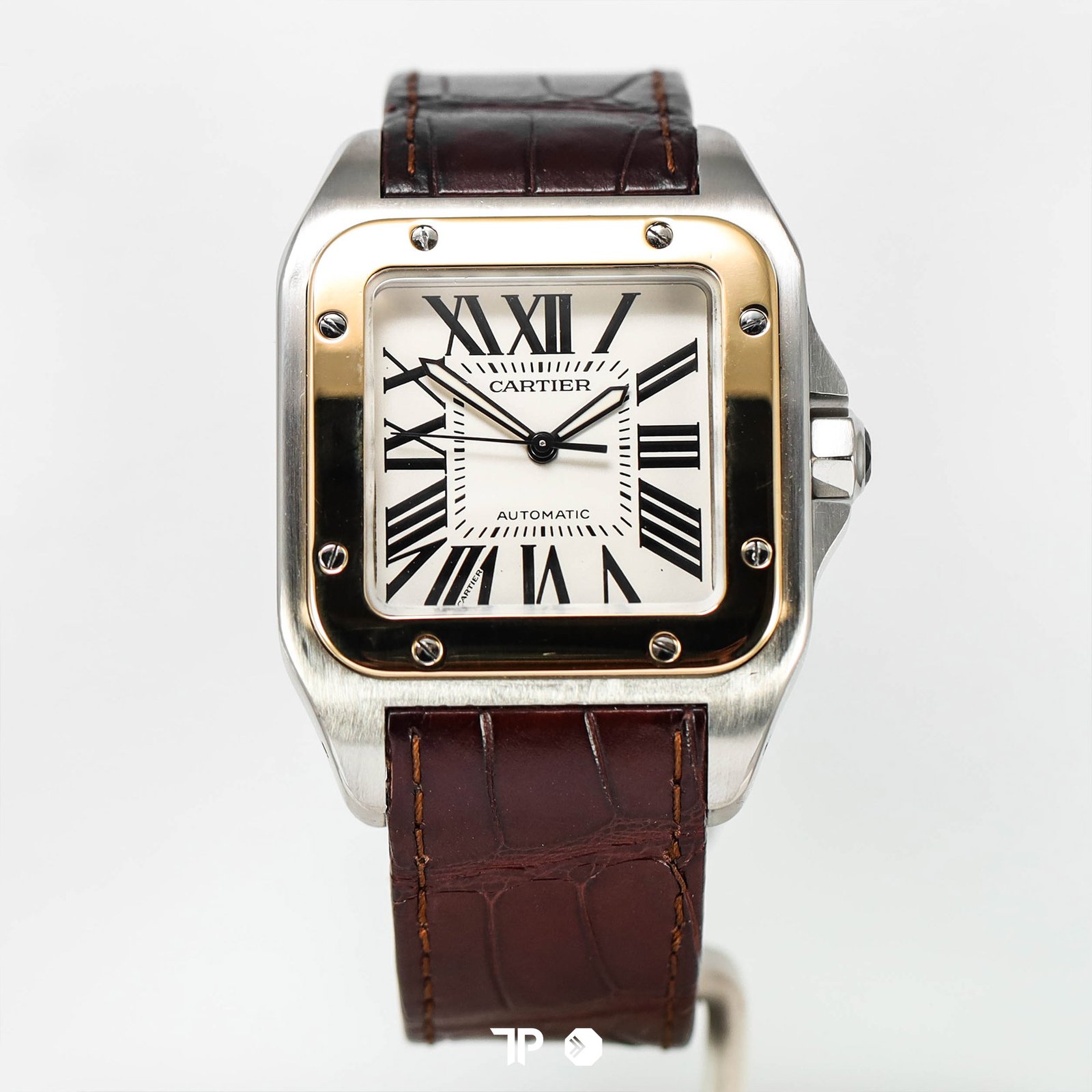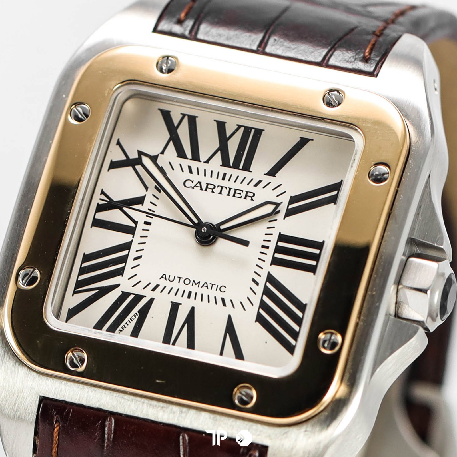 CARTIER SANTOS 100 TWO TONE LEATHER AUTOMATIC 38X51MM