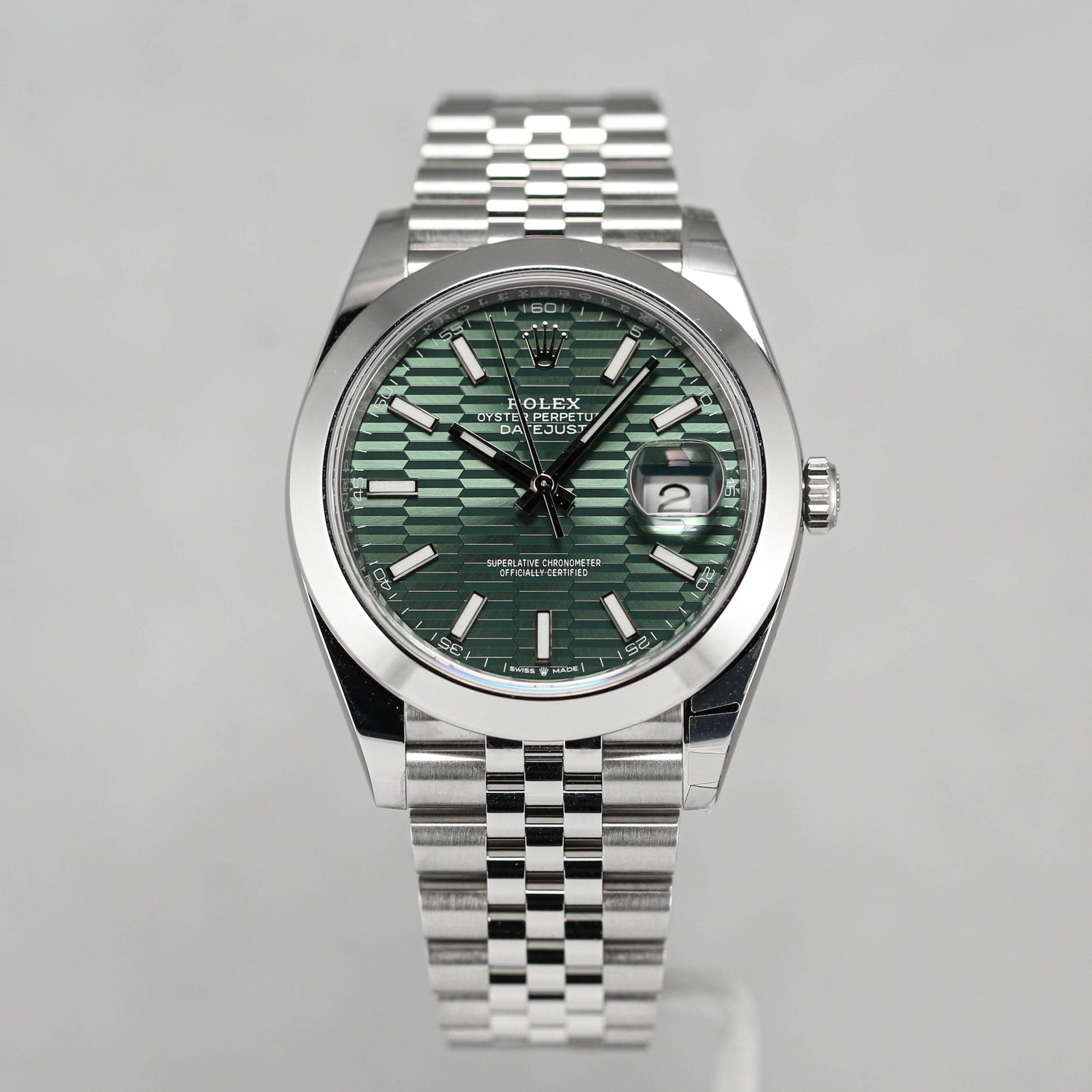 ROLEX DATEJUST 41 GREEN MOTIF WHITE GOLD FLUTED BEZEL JUBILEE BRACELET (NEW 2023)