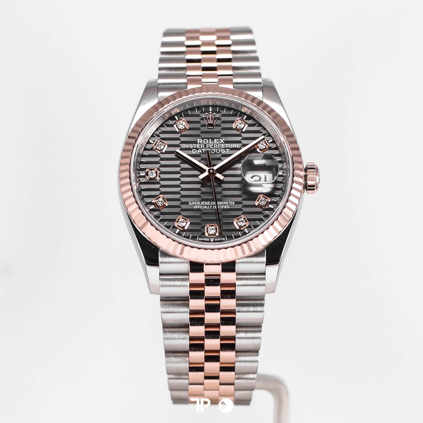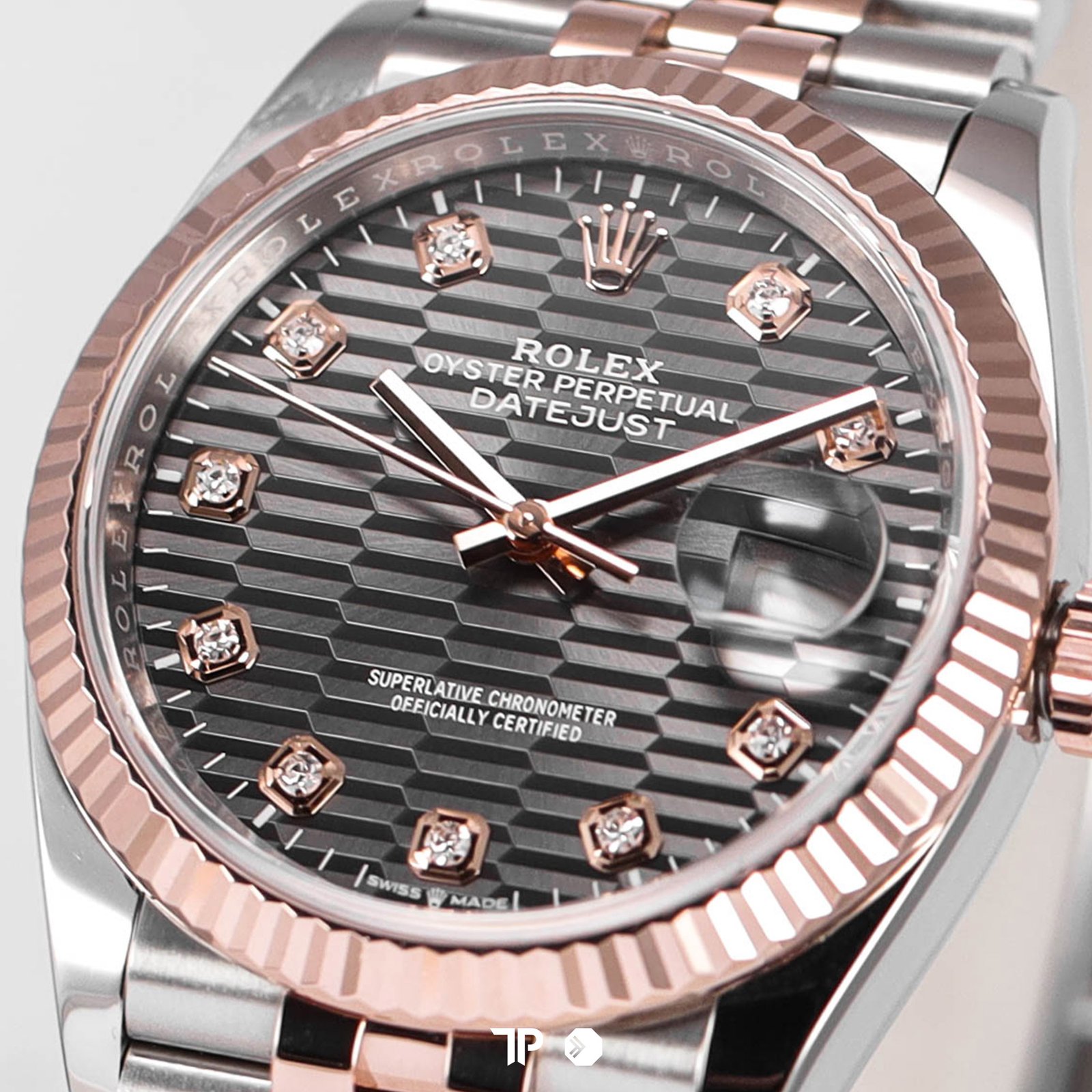 ROLEX DATEJUST 36 TWO TONE FLUTED GREY DIAL DIAMOND INDEX (2022)