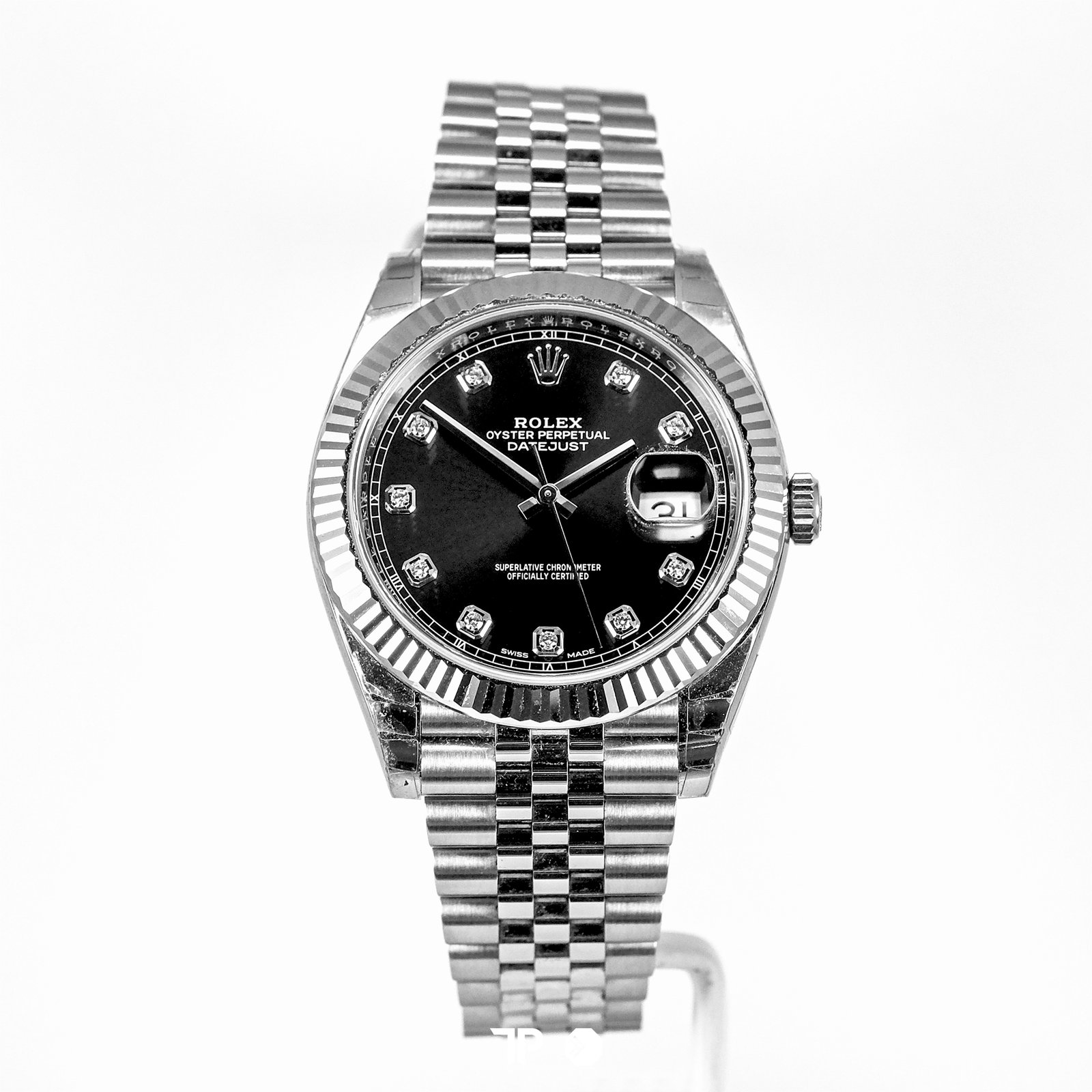 Rolex Datejust 41 Black Dial Fluted Bezel Diamond Index (2018)