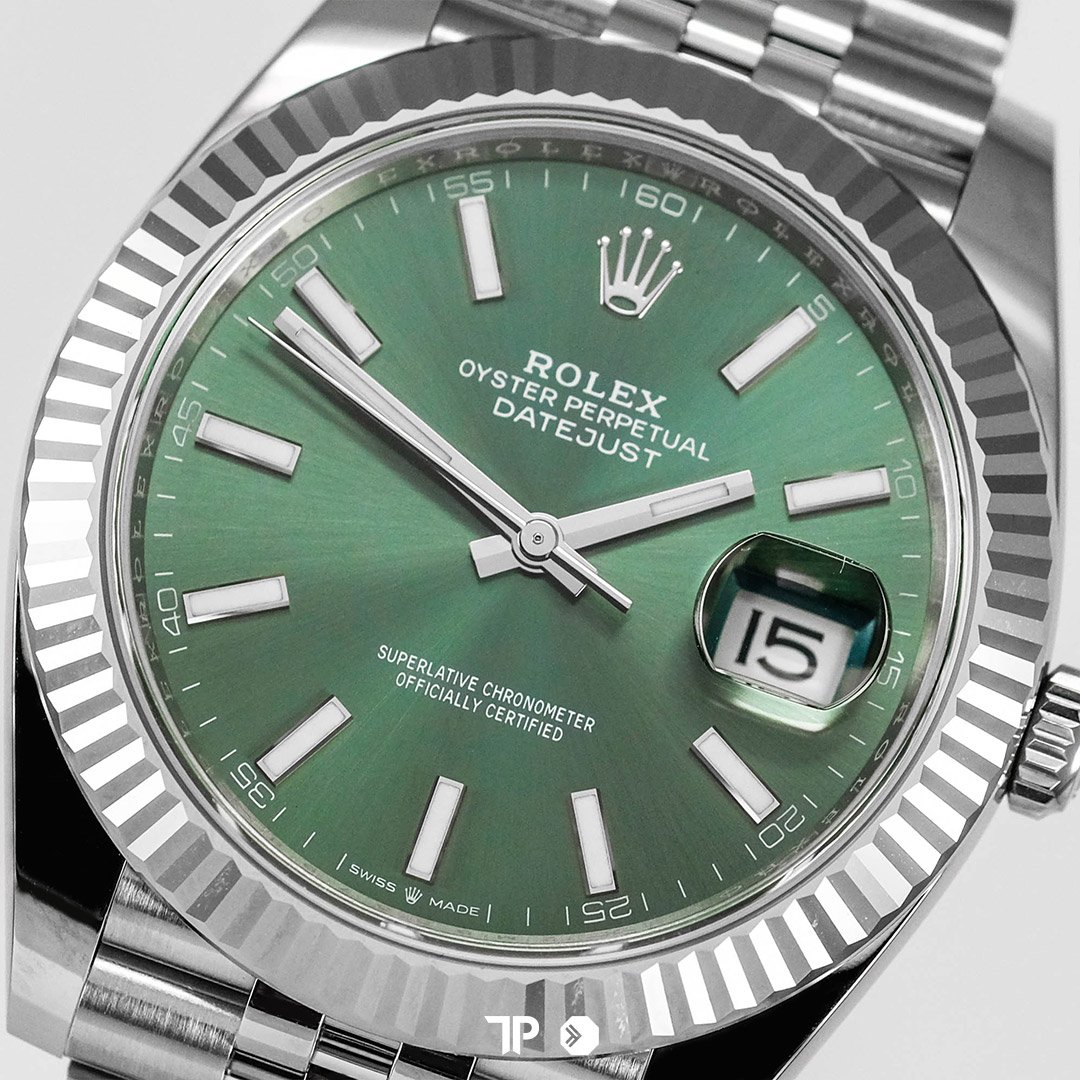 ROLEX DATEJUST 41 MINT GREEN FLUTTED BEZEL JUBILEE LIKE NEW(2026)